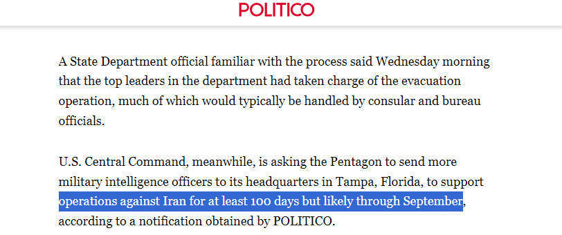 △好意思国《政事报》闪现:好意思军中央司令部正苦求五角大楼为针对伊朗的军事步履蔓延至少100天提供接济
